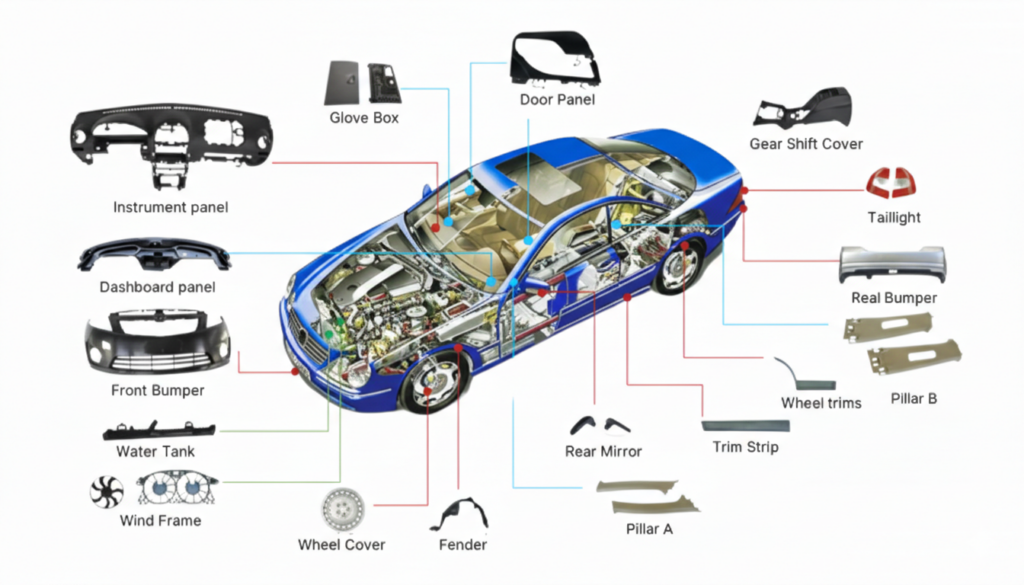 E-HENG offers high-quality plastic molds for industrial manufacturing, specifically for the automotive sector. These include: Automotive Components: Molds for instrument panels, bumpers, door panels, and lighting. Precision Engineering: Designed for high precision and durability to enable mass production of complex automotive and industrial parts.